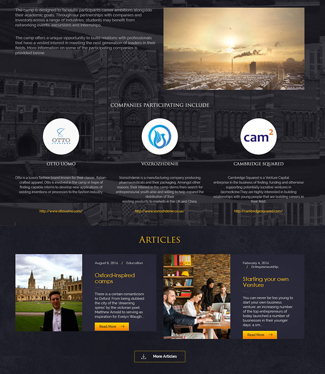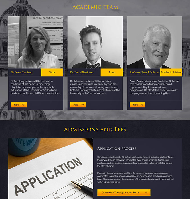 WordPress single-page Website for Oxford Science Camp