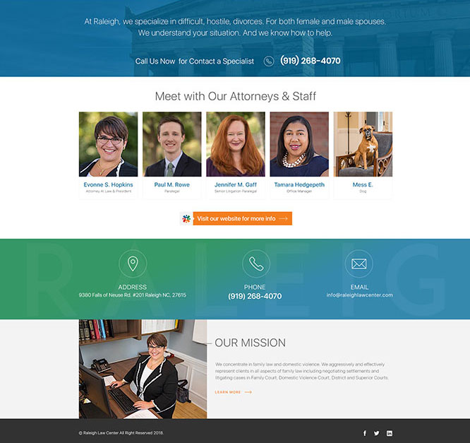 Corporate website for Raleigh Law Center